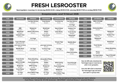 Meer informatie? Vraag ernaar bij de receptie of een van de trainers van Fresh.
